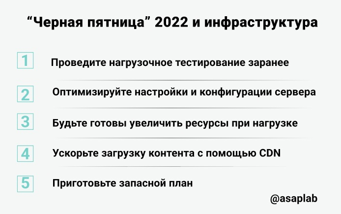 Внимательно прочитайте Соглашение об уровне обслуживания вашего провайдера. Убедитесь, что в нем есть план аварийного восстановления (Disaster Recovery Plan) с подробным описанием всех действий по ликвидации последствий аварии и восстановлению данных. В плане указываются роли и обязанности ответственных сотрудников и последовательность предпринимаемых ими действий. Что говорить, подготовка интернет-магазина к сезону распродаж — это приключение. Но вы можете сэкономить время, деньги и ресурсы, если заранее обратитесь к провайдеру управляемых услуг. ASAP Lab — команда сертифицированных SysOps администраторов, SRE и DevOps-инженеров. Мы оперативно проведем аудит производительности сервера и проекта в целом, после аудита вы получите отчет с рекомендациями по подготовке к Черной пятнице и новогодним распродажам 2022. Для новых клиентов мы подготовили ограниченный по времени welcome-сертификат стоимостью $40, чтобы вы могли попробовать услуги администрирования серверов c приятной скидкой. Сертификат необходимо активировать до 30.11.22, а оплатить им услуги можно до конца 2022 года. Сертификат можно использовать только для оплаты услуг ASAP LAB. Денежный эквивалент не подлежит выплате. Получить бесплатную консультацию по подготовке магазина к нагрузке!
