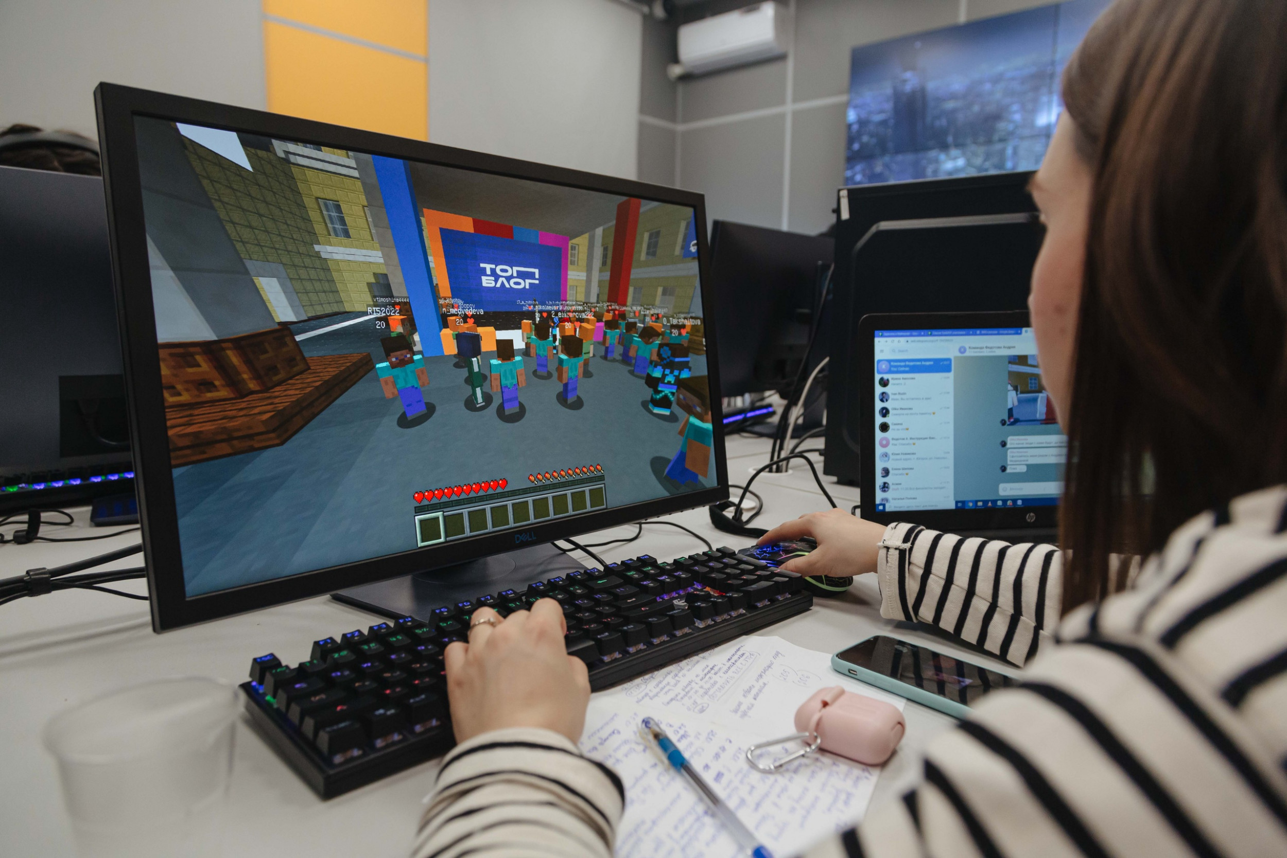 Следствием этих изменений стало новое задание - оформить площадку на сервере. Сроки никто не сдвигал, задания генерировались прямо по ходу понимания того, какие возможности дает игра. Нужно было подготовить в формате картинок оформление магазинов, лекториев, входной зоны и главного зала. Я ворчал, пил кофе литрами, но работал, периодически меняя рабочее место. С одной стороны, задание стало легче: был единый размер, под который мы делали картинки. С другой стороны, макеты нужно было делать практически с нуля из-за новых правил. Нам повезло: менеджер по украшению Майнкрафта составила техзадание, в котором ничего не менялось и мы быстро его выполнили.