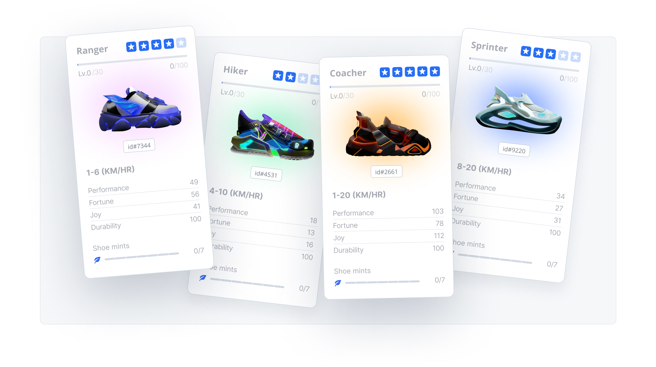 В Amazy nft — это виртуальные кроссовки со своими типами, характеристиками и редкостью. Все про кроссовки расскажем далее.