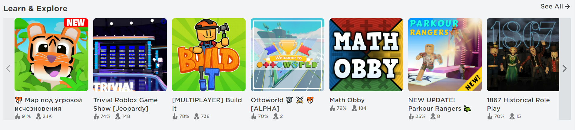 Для начала игры нам нужно создать аккаунт на официальном сайте Roblox. После прохождения регистрации у вас создается рандомный аватар, который в последствии вы можете изменить у себя в профиле. Теперь осталось только установить игру на ваш девайс. Roblox доступна на множестве платформ: Готово! У вас есть все для того, чтобы начать играть. И перед вами открывается огромное множество игровых карт. Чтобы на них зайти, достаточно выбрать карту в разделе «Discover» и нажать зеленую кнопку. В Roblox игры — это основное времяпрепровождение. Существует множество режимов, жанров, тематических карт и так далее. Мы расскажем про некоторые из них: Перечислять игры можно до бесконечности, в Roblox найдется все! Каждый сможет найти то, что ему по душе. Например, можно выделить такие жанры: Но самое крутое в этом то, что практически все из них были созданы вручную обычными игроками! Экосистема Roblox — это внешние инструменты игры. Можно выделить 2 основных: Roblox невероятно популярен и имеет более 160 миллионов активных игроков ежемесячно. И весь секрет игры заключается в простоте и свободе действий игроков. Они создали условия, при которых пользователи сами вольны создавать себе игровой опыт, используя готовые простые игровые механики. Плюсом стало и то, что разработчики переквалифицировали игру в метавселенную, что дало дополнительный буст. И сейчас многие бренды рассматривают именно Roblox для создания собственных виртуальных пространств! Читайте свежие новости из мира NFT в Telegram! Больше полезной информации ищите на нашем сайте и соцсетях: в Instagram и Tik Tok.