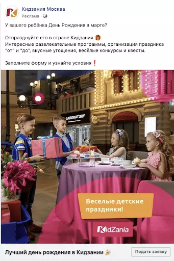 - Сформировали разные аудитории из CRM по дням рождениям детей. И таргетировались на их родителей.