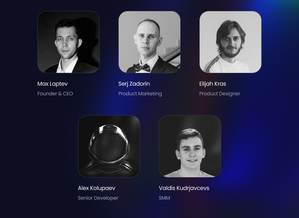 Max Laptev — Засновник/головний виконавчий директор проекту Crodo. Max і його основна функція визначати правильні алгоритми роботи в середині команди і розвивати проект зовні. Більшість роботи випадає на зовнішні питання, тобто розвиток спільноти, робота над економікою, ринок, технологією та користувачами.