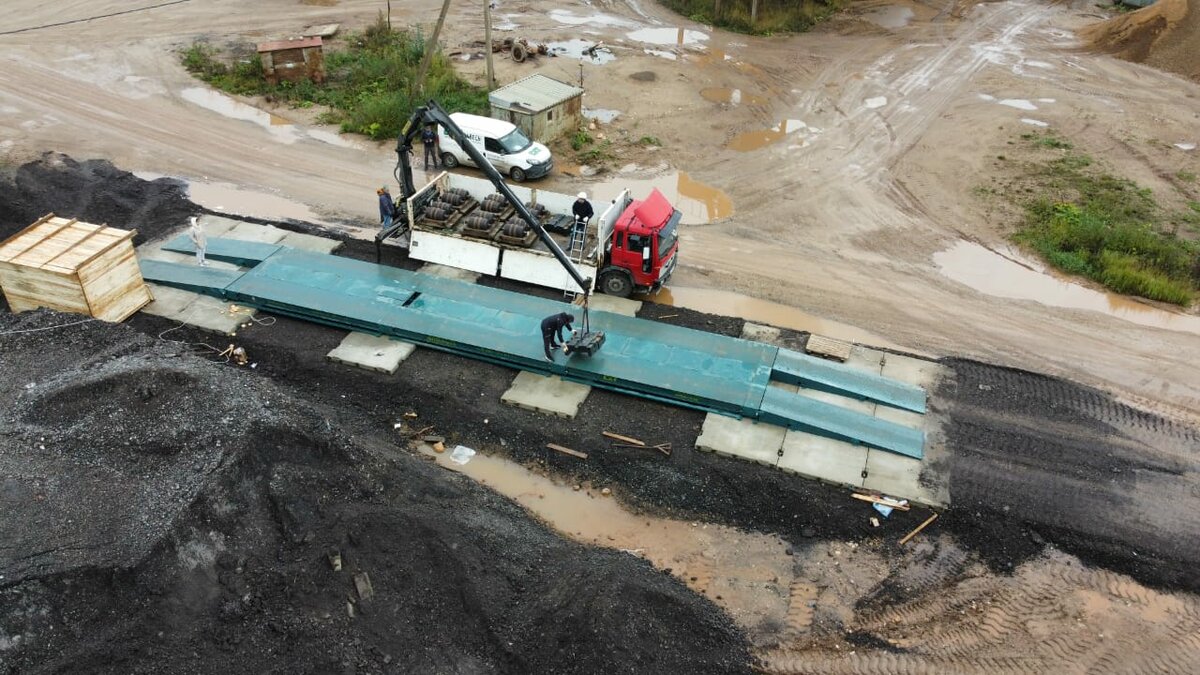Автомобильные весы длинной 16 метров и возможностью взвешивать грузы до 80 тонн были смонтированы на площадке, расположенной на снабжающем карьере в Новгородской области. Фундамент под автомобильные весы готовил заказчик, по документации предоставленной СХТ. Для многих производственных предприятий, такой способ приобретения весов является наиболее предпочтительным в виду своей выгоды. Действительно, имея собственную технику, материалы и рабочую силу — намного проще самим построить фундамент, а производителю весов остается только его профильная задача. Весы были смонтированы так чтобы, в любой момент их можно было перенести на новое место. Для такого случая не было необходимости строить для весов монолитный фундамент, а достаточно подготовленной ровной площадки с уплотнённым грунтом с бетонными плитами под основные места нагрузок.