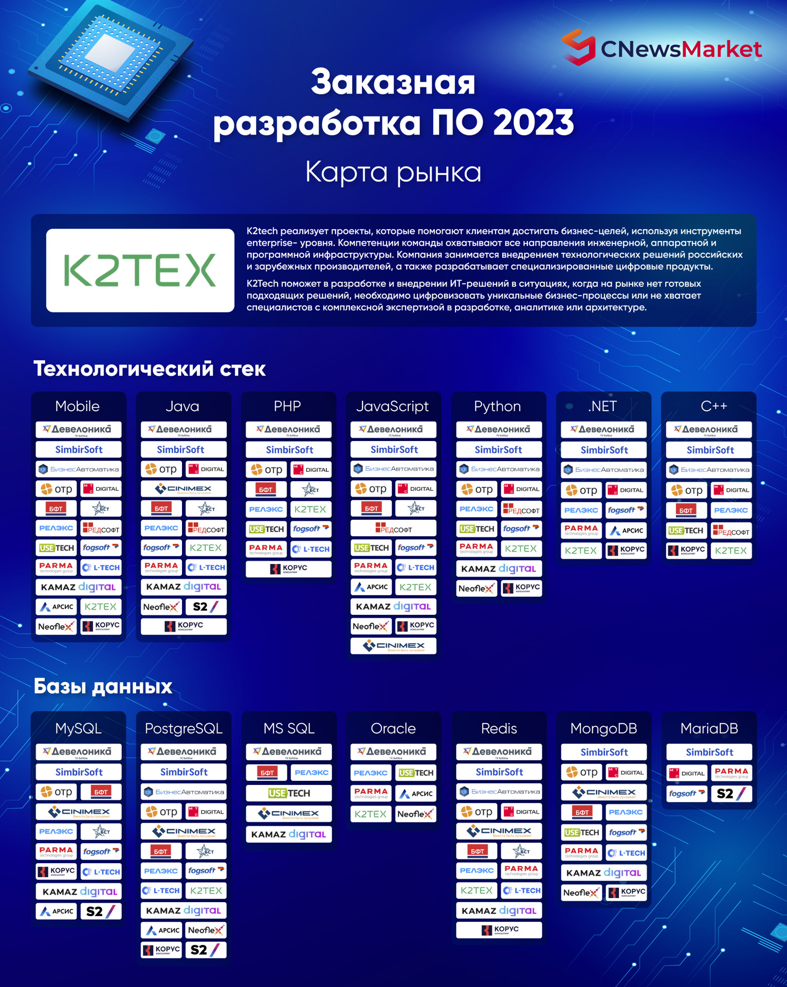 Рейтинг «Заказная разработка ПО 2023»: https://www.cnews.ru/reviews/custom2023/review_table/660f3c544f514c338304f81a568d8539e87f67b6