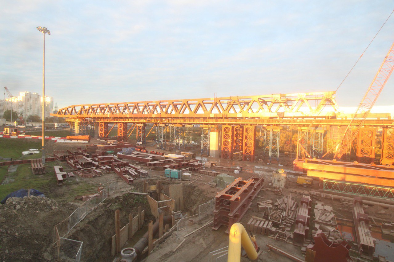 Строители закончили работы по третьему, последнему, этапу надвижки металлоконструкции путепровода — над КАД.