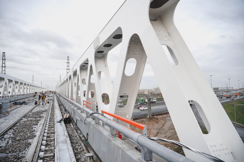 Общая длина путепровода составляет 1,2 километра, из них 240 метров приходится на пролетное строение над КАД. Это — ключевое звено всей рельсовой магистрали, сообщает пресс-служба Смольного.