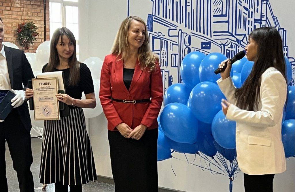 Мария Михайлова также вручала премию «Социальный ответственный бизнес» заведующей кафедры менеджмента и государственного и муниципального управления, доцент, кандидат экономических наук Санкт-Петербургского университета технологий и управления и экономики Елене Ушаковой.