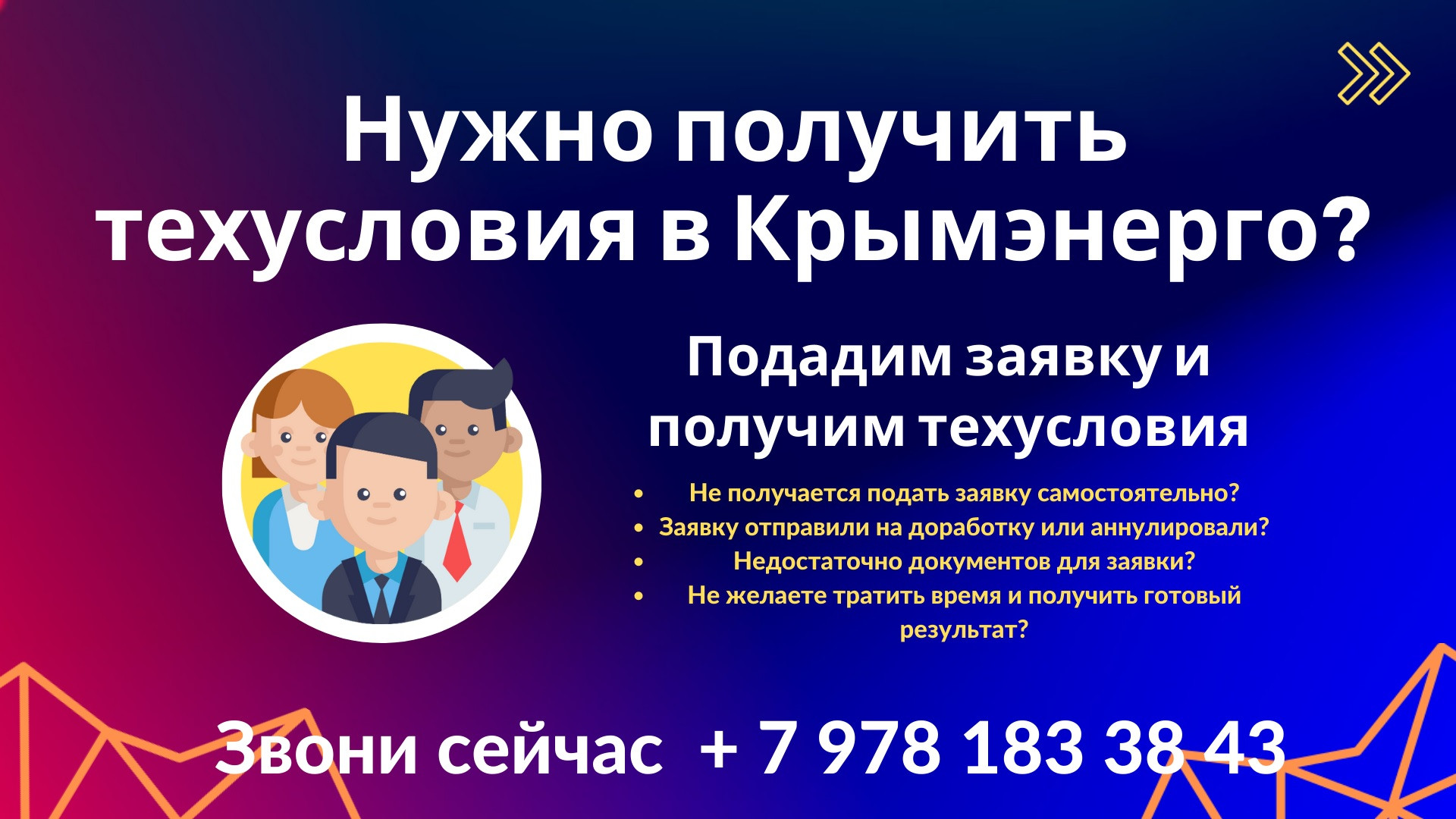7. Помощь в подаче заявки, получить техусловия Крымэнерго! Отзывы говорят за нас!