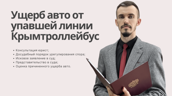 Вот один из таких случаев, который случился с нашим клиентом. 1. Сотрудники ГИБДД зафиксируют повреждения автомобиля, если это линия, провода Крымтроллейбуса, вынесут определение об отказе в возбуждении дела об административном правонарушении. Указанное необходимо для обращения в суд. 2. После чего следует обратиться к эксперту, экспертиза поможет установить точную сумму ущерба. 3. Юрист поможет составить заявление в суд и собрать все необходимые документы. Также он может помочь взыскать расходы на проведение экспертизы, расходы на юриста, оплату госпошлины в суд. В соответствие со ст. 1064 ГК РФ вред, причиненный имуществу гражданина подлежит возмещению в полном объеме лицом, причинившим вред. В состав транспортной инфраструктуры ГУП «Крымтроллейбус» входит подвижной состав электрических машин-троллейбусов и элементы контактной электрической сети, в том числе и электрические провода — кабели. Контактная сеть, предназначенная для эксплуатации троллейбусов, является источником повышенной опасности, причинение вреда автомобилю нашего клиента произошло в результате обрыва контактного провода, поэтому именно ГУП РК «Крымтроллейбус» обязано было предпринять все возможные меры для исключения обрыва контактного провода и его падения на транспортные средства, в том числе своевременно обнаружить угрозу обрыва контактной сети и предпринять превентивные меры к исключению повреждения контактной сети. 4. Результаты моей работы — юрист по ДТП Симферополь В нашем случае, в добровольном порядке ГУП РК «Крымтроллейбус» отказалось возмещать ущерб, проигнорировав нашу досудебную претензию. После чего, незамедлительно, обратились в суд, где была проведена судебная экспертиза, которая определила ущерб авто в размере 437 900 рублей, стоимость судебной экспертизы 40 000 рублей, госпошлина в суд 7 579 рублей. Таким образом, ответственность за эксплуатацию контактной троллейбусной сети несет ГУП РК «Крымтроллейбус», как и ущерб, причиненный автомобилю. Более того, преимущество работы со мной в том, что: — работаю совместно с экспертом, Вам не придется искать его и сомневаться в качестве эксперта, — помогаю взыскать расходы на проведение экспертизы по оценке причиненного вреда, — расходы на мои услуги возмещает ГУП РК «Крымтроллейбус».