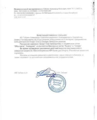 Широкая аудитория от 25 до 40 лет Всего было протестировано рекламных объявлений: Instagram Вконтакте Яндекс.Директ Наиболее эффективные рекламные материалы Было создано 2 рекламные компании. Это реклама в поиске, где мы использовали горячие ключевые слова такие как: «доставка еды», «заказать бургеры» и т.д. А также рекламную сеть Яндекса, в который мы взяли горячие запросы, связанные с доставкой едой. В каждой рекламной компании было разделение на мужчин и женщин, далее со сбором статистики еще добавилось разделение на возраст. Аудитория была использованная широкая по ГЕО, а также с разделение на доставку. Забегая вперед, скажу, широкая аудитория в разделении по возрастам сработала лучше всего. На каждую группу было подготовлено по 17 объявлений с разными посылами. Аудитории, которые показали лучший результат, это по интересу доставка. На каждую аудиторию было создано по 17 разных постов. Заказов на сайте (за 1 месяц) Заработано с переходов рекламы Суммарный рекламный бюджет Было заработано спустя три месяца за счет повторных заказов, которые пришли в первый месяц работы. (Иной рекламы больше не было) Месяц ведения рекламы показал, что у людей в г. Кириши есть потребность в данном заведении. Суммарно было потрачено за месяц 13 600,00 ₽ рекламного бюджета, как видно 1 348 заказов (без учета телефонных и оффлайн заказов) показывают, что рекламный бюджет полностью себя окупил, даже если бы в каждом заказе был сделан минимальный заказ на сумму 500 рублей. Как видно при затратах 13 600 рублей бюджета, только с прямых заказов пользователей, которые перешли с рекламы, суммарно оформили заказов на 115 464 рубля. При учете, что реклама доставки была только в интернете, суммарно после увиденной рекламы люди в течении месяца оформили заказов на сумму 664 757 рублей. А суммарно с 18.04.2020 — 26.07.2020 (напоминаю, что реклама за этот период была всего 1 месяц) без какой либо рекламы офлайн и карантине было заработано после рекламной активности 1 552 412 руб. с помощью переходов по брендовому запросу и прямых переходов. *Звонки и заказы, которые были выданы в самом ресторане не учитываются. После успешной рекламной компании 2020 году, клиент снова пришел к нам и попросил вести рекламу в 2021 году, также как и в первый раз, срок работы был оговорен фиксированный, но увеличен до трех месяцев. Обусловлено это тем, что охватить новую аудиторию в данном городе возможно за данный срок, а наша цель: это честность перед клиентом, а не постоянное ведение рекламы, если в этом нет необходимости для его бизнеса. В данном случае, цель была не доставка, на нее было выделено 20%, а основная задача приход в ресторан. Заказов на сайте на доставку Заработано сразу с рекламы Увеличена ежемесячная посещаемость ресторана Суммарный рекламный бюджет Меня зовут Денис Сергейчик. Я маркетолог и стратег по интернет продвижению. Являюсь практиком в интернет маркетинге. Более 50 личных кейсов, которые сделал самостоятельно. Обучался маркетингу в лучших университетах США и России. Постоянный спикер и участник конференций по интернет-маркетингу. Преподаватель в крупнейшем онлайн университете «Нетология», провожу лекции по источникам продвижения в интернете. Награжден в 2019 году национальной премией бизнес-коммуникации за лучшую региональную стратегию. Сертифицированный специалист Google, Яндекс, MyTarget.