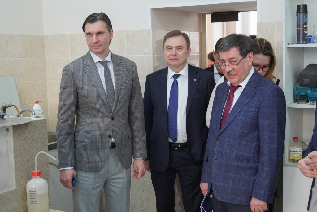 Участники встречи посетили Инжиниринговый центр МГРИ, разработки которого представил директор департамента науки и технологий МГРИ Рустам Мустаев. Обсудили перспективы развития аналитико-минералогической лаборатории, созданной при поддержке Металлоинвеста. Также, директором по цифровизации и инновациям МГРИ Михаилом Нагайцевым была представлена работа Центра искусственного интеллекта в сфере геологии и недропользования им. Л.З. Бобровникова, его ключевые проекты и направления развития.
