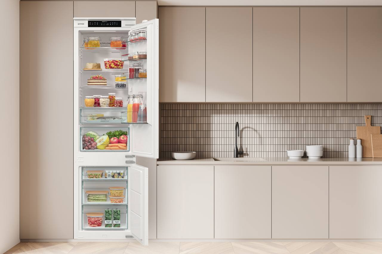 Встраиваемый двухкамерный холодильник Gorenje NRKI519141 — это удобное решение для небольших кухонь, сочетающее вместительность и компактные размеры. Глубина модели составляет 54,5 см, что позволяет без проблем встроить его в стандартные кухонные модули. Благодаря системе No Frost не требуется регулярная разморозка, а технология AdaptTech поддерживает оптимальную температуру, анализируя частоту открытия дверцы. Инверторный компрессор обеспечивает тихую работу, а функции суперзаморозки и суперохлаждения позволяют быстро подготовить продукты к хранению. С объемом 275 литров этот холодильник остается практичным даже для семейного использования.
