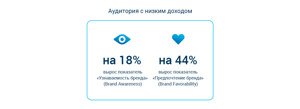 В первую очередь нам необходимо было определить, какая тактика будет наиболее эффективной — реклама, нацеленная на охват или на вовлечение? Охватная тактика подразумевала оповещение о бренде максимально широкой аудитории, вовлечение — увеличение числа касаний с потенциальными клиентами, но при существенном сокращении охвата.