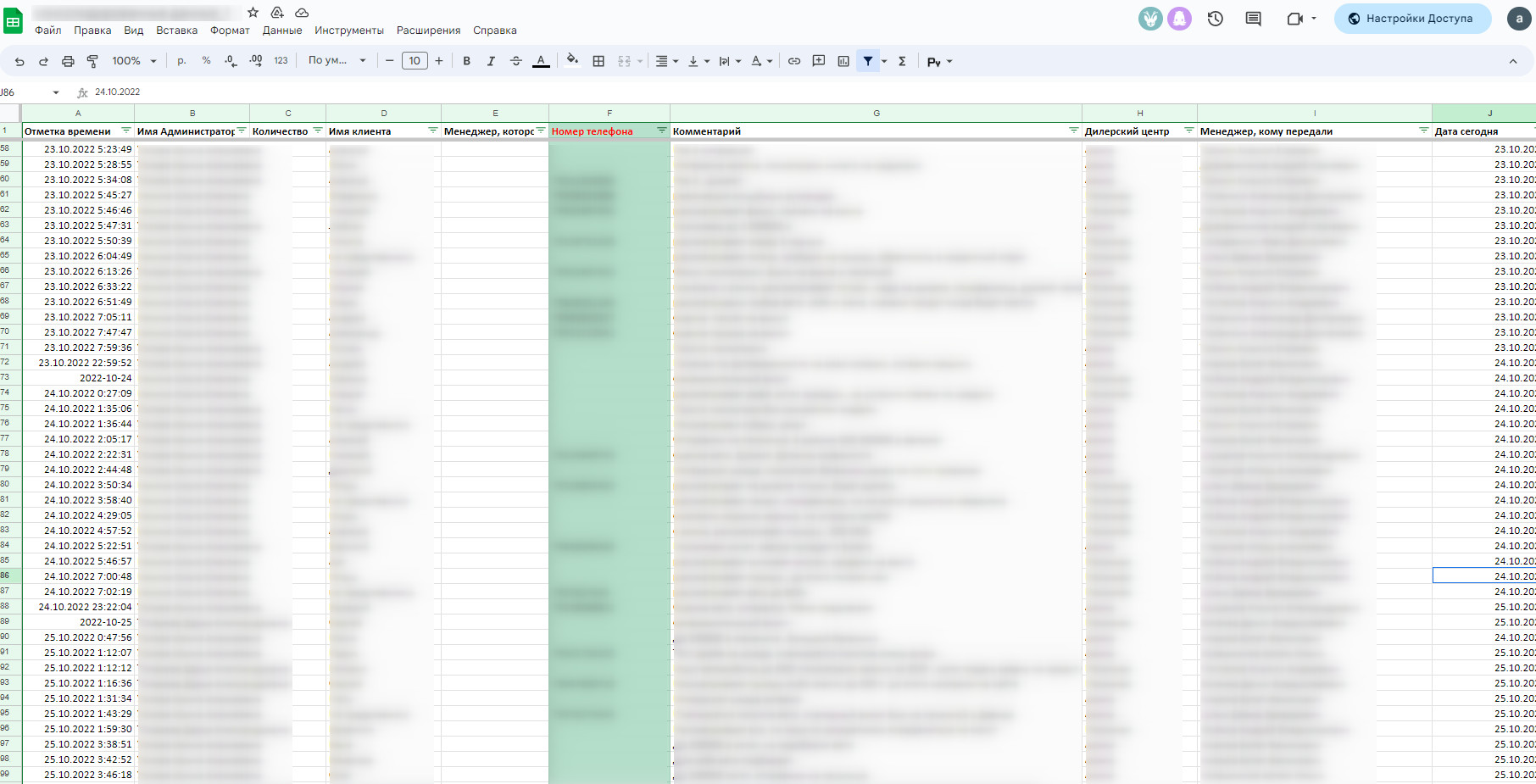 - Google-таблицы для сбора данных: количество продаж, визитов в салон, статус работы с клиентом и т.д.;