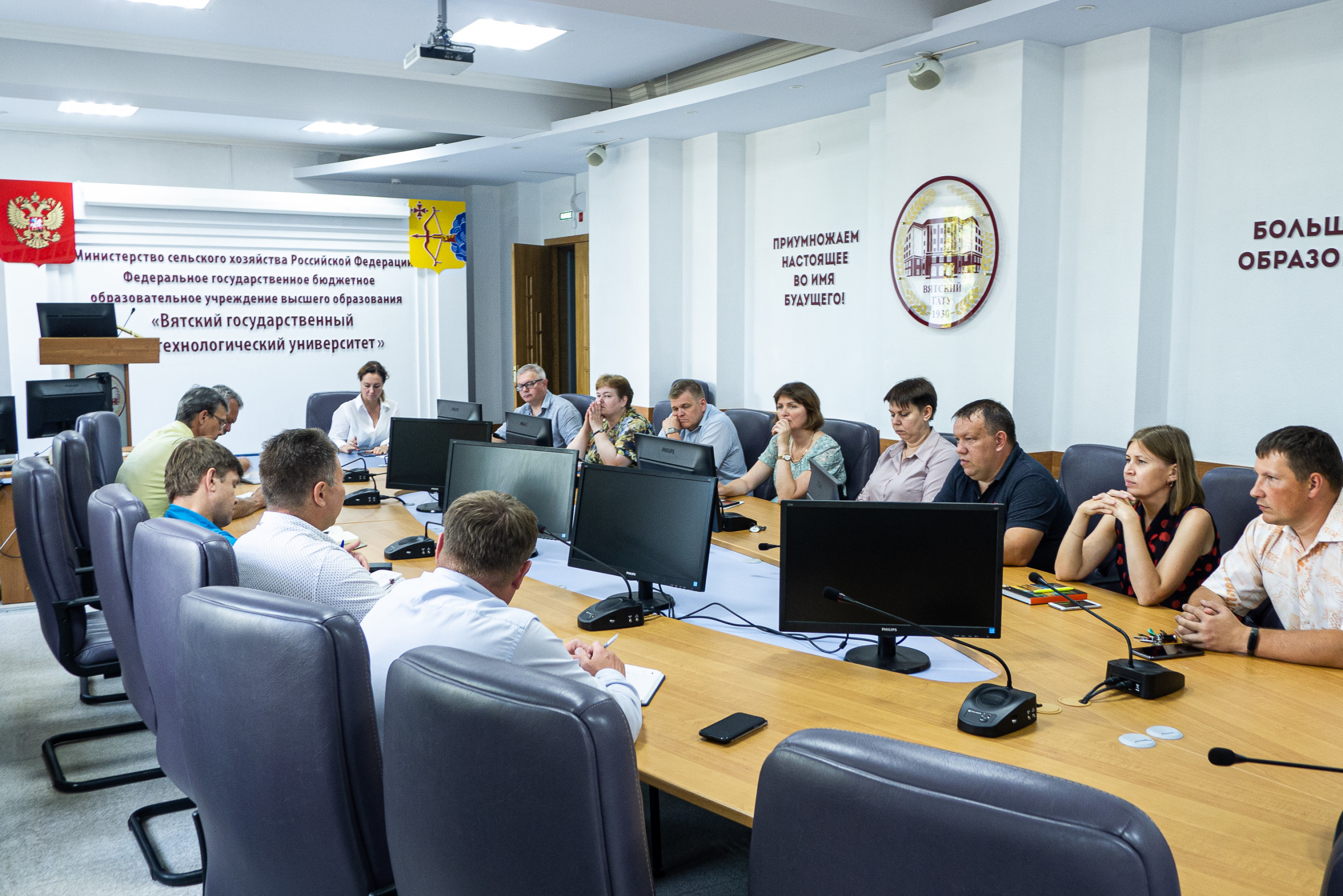 В формате видеоконференцсвязи подключались все, кто не смог приехать в университет: обучающиеся и профессорско-преподавательский состав Вятского ГАТУ, руководители и ветеринарные врачи удаленных хозяйств. Семинар с приветственным словом открыл заместитель председателя Правительства, министр сельского хозяйства и продовольствия Кировской области А.А. Котлячков. Он обозначил актуальность сохранения здоровья крупного рогатого скота молочной направленности. Ректор Вятского ГАТУ Е.С. Симбирских подчеркнула, что развитие российско-белорусского научно-технологического сотрудничества в целях импортозамещения и укрепления продовольственной безопасности — приоритет деятельности аграрных вузов. Далее состоялся продуктивный диалог между белорусскими коллегами, учеными университета и специалистами животноводческих предприятий Кировской области. Обсуждались вопросы профилактики заболеваний КРС, сохранение здорового поголовья стада, повышение качества молока в Кировской области. Делегация посетила одно их успешных хозяйств области — СПК им. Кирова. Председатель кооператива Ожегин Борис Ананьевич провел экскурсию по молочным фермам, ответил на вопросы членов делегации. Проректор по науке Курбанов Рустам Файзулхакович познакомил представителей Белоруссии с Вятским ГАТУ. Были продемонстрированы экспонаты музеев, современные лаборатории, учебные аудитории. День завершился обсуждением вопросов дальнейшего сотрудничества. В работе круглого стола приняли участие деканы факультетов Вятского ГАТУ. Ректор университета Елена Сергеевна подчеркнула важность взаимовыгодного сотрудничества для развития науки, обмена знаниями и компетенциями. Стороны договорились, что взаимная работа по сохранению и профилактике здоровья крупного рогатого скота молочной направленности будет продолжена.