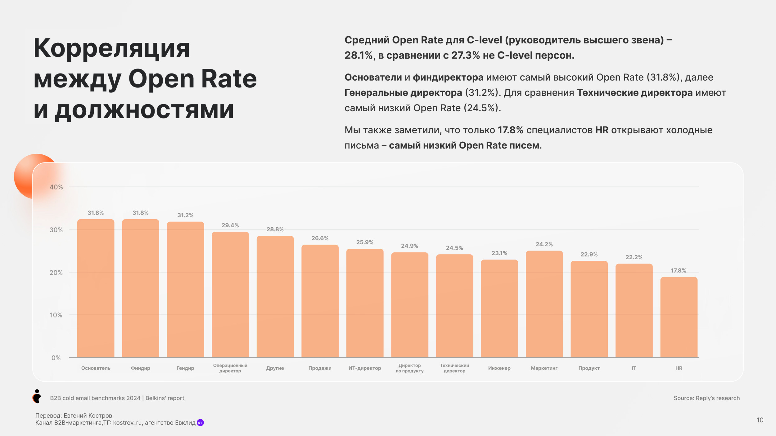 - Open и Reply rate по должностям