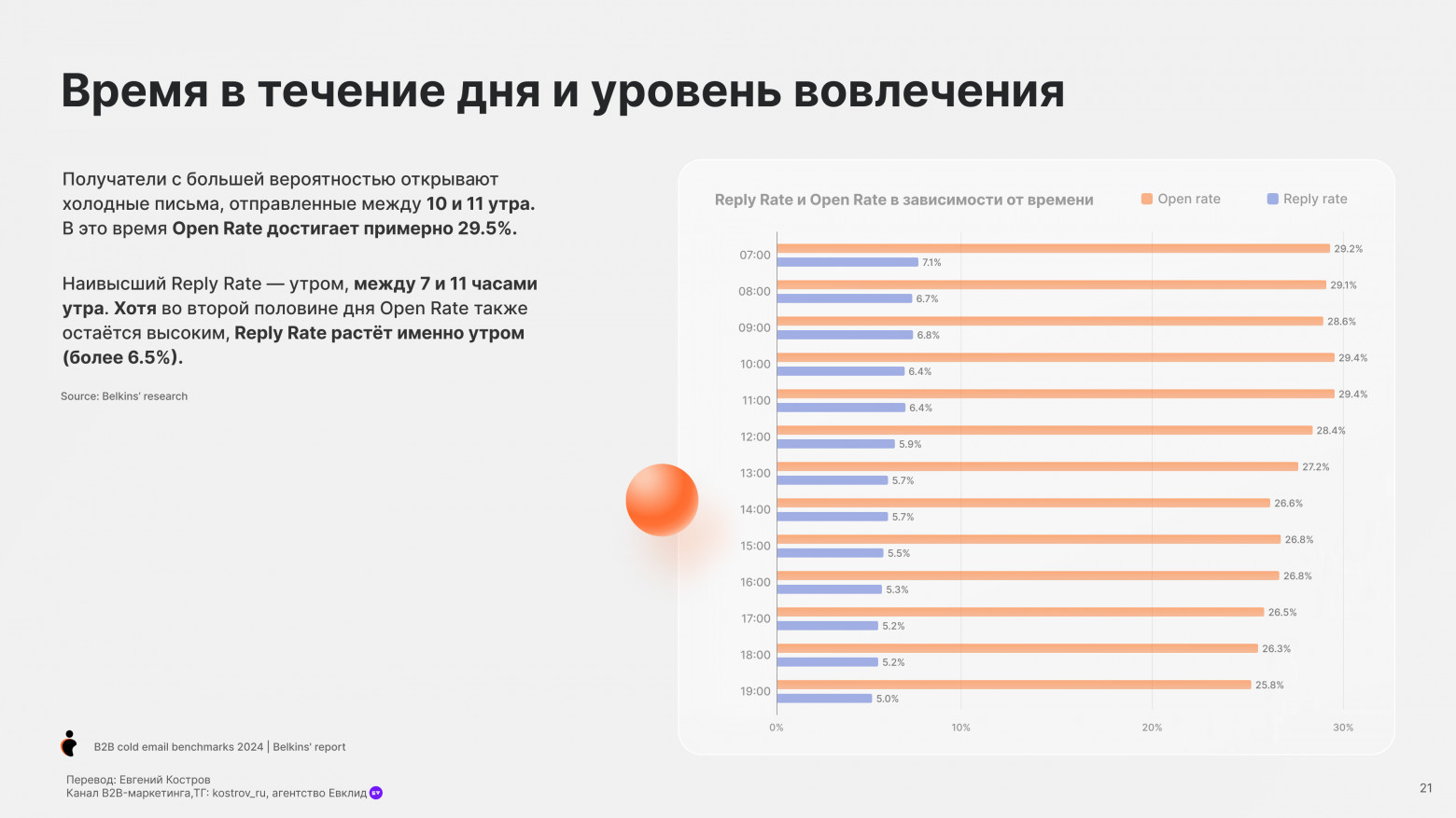 - 07:00 — 11:00 — Самый высокий Reply Rate (до 7.1%)