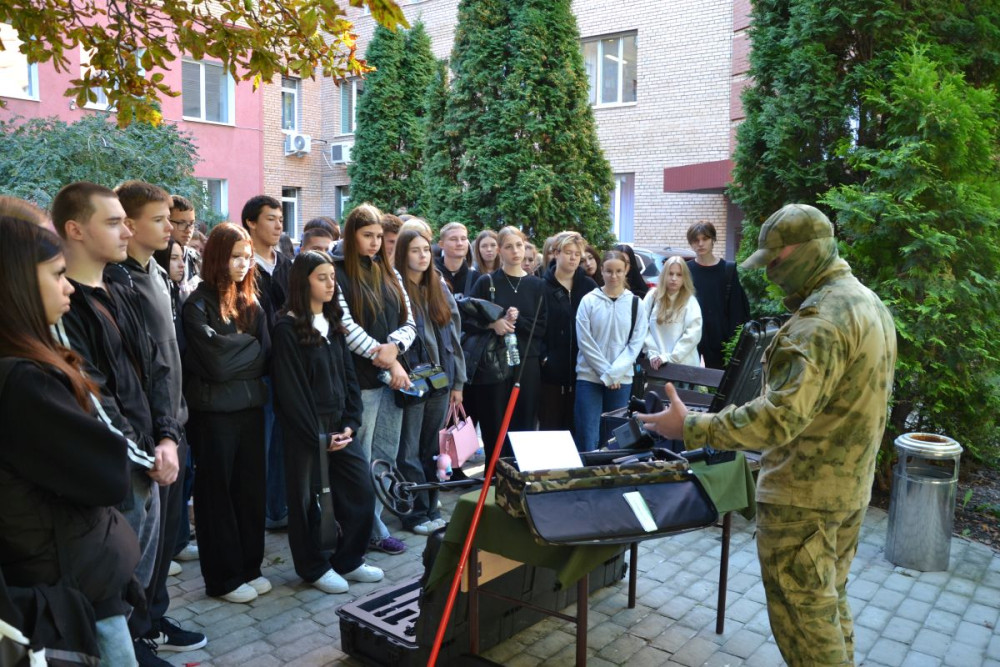 В начале мероприятия стражи правопорядка подробно рассказали молодежи обо всех подразделениях, входящих в структуру Росгвардии, и наглядно продемонстрировали их работу на тематических площадках. Студенты увидели современные беспилотные летательные аппараты, применяемые в служебно-боевой деятельности, а сотрудники вневедомственной охраны объяснили принцип работы кнопки тревожной сигнализации.