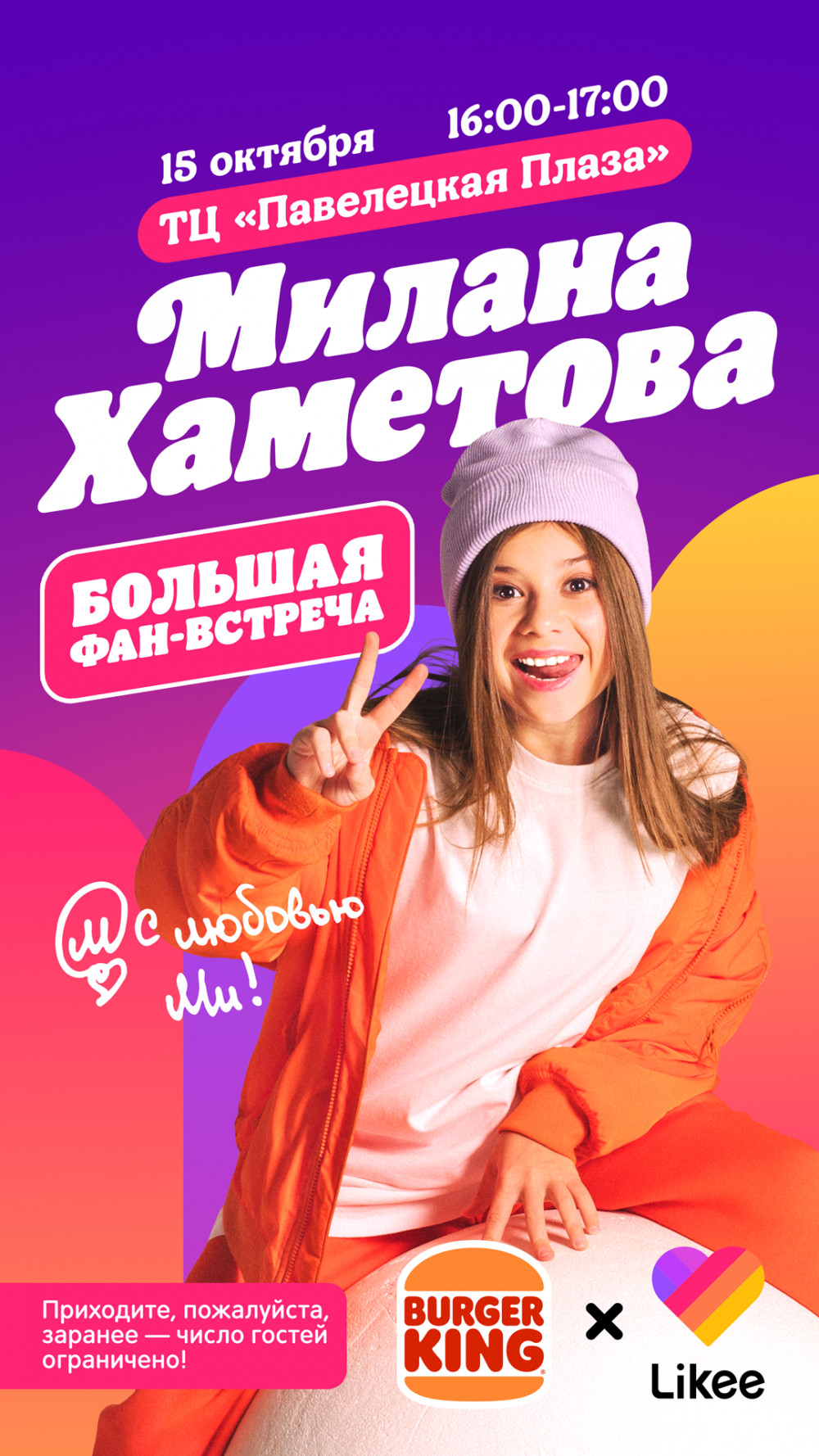 Бургер Кинг приглашает на фан-встречу с Миланой Хаметовой