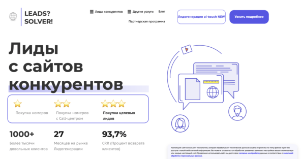 4. LEADS SOLVER — легально привлекает контактные данные клиентов ваших конкурентов, обеспечивая конверсию на уровне 8–10%. Запуск возможен всего за сутки.
