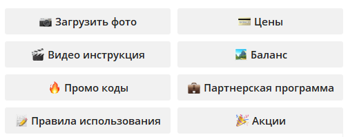 Для начала, потребуется подписаться на соответствующий канал и выбрать пункт в «Меню»: «Отправить фото», «Купить обработки» или др.