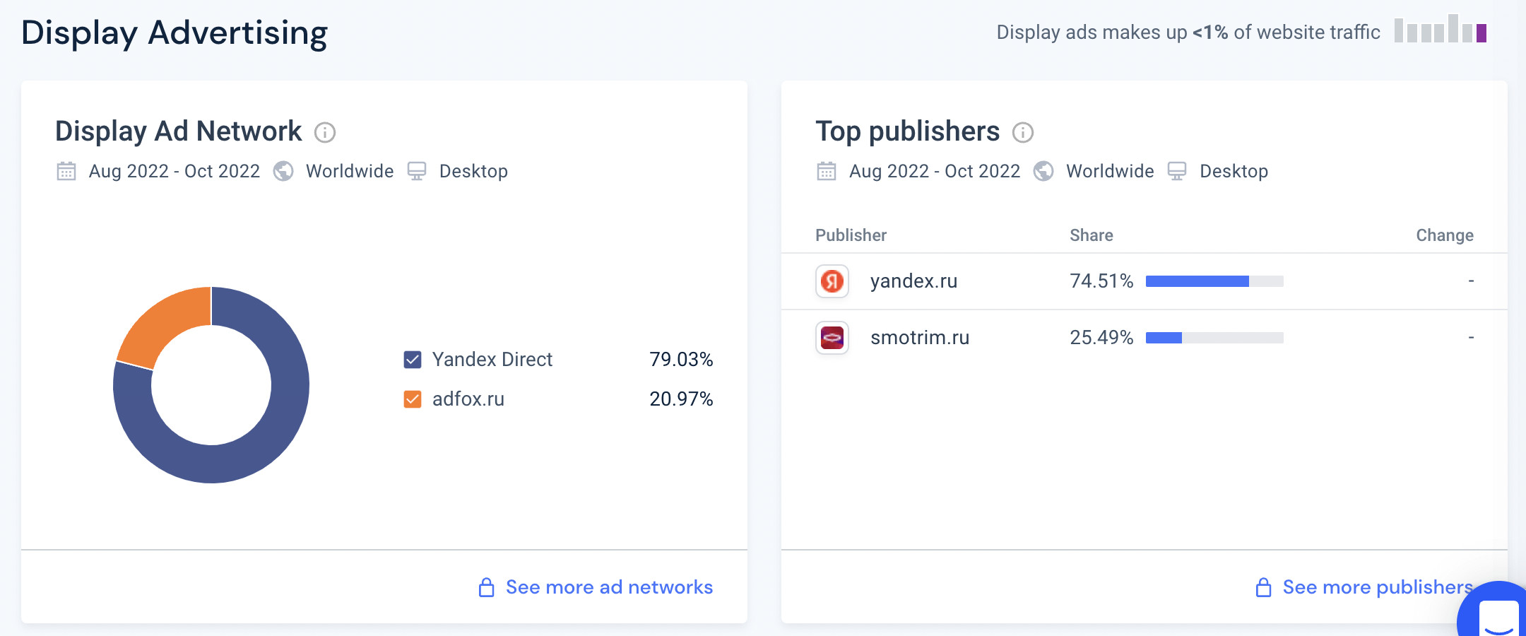 79,03% всей дисплейной рекламы приходится на Яндекс, остальное на adfox.