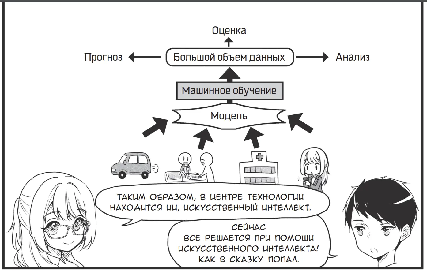Риса и Миу учатся в институте и подрабатывают в кафе Norns. Миу очень нравится один из посетителей кафе, но она не знает, как с ним познакомиться. Однажды он забывает на столе книгу, которая оказывается учебником по регрессионному анализу. Теперь есть повод заговорить с ним, но Миу почти не знакома с регрессионным анализом. И тогда Риса берётся помочь своей подруге разобраться в этой науке, осваивая которую Миу узнает, зачем и когда нужен регрессионный анализ, как его проводить, как оценивать его достоверность. Сотруднику городской администрации Киёхара Кадзума поручено задание, которое без машинного обучения не выполнить. Под руководством своей давней знакомой Мияно Саяка он осваивает премудрости работы с искусственным интеллектом — от самых азов до глубокого обучения. Вместе с героями манги читатели узнают о том, что такое регрессия и как проводить классификацию, ознакомятся с принципами оценки тестовых данных и особенностями работы нейронных сетей. В заключительной части излагаются методы обучения без учителя. Скачать книги бесплатно можно в моем телеграм канале по ссылке. Конечно, книги не заменят серьезного чтения. И если вы планируете работать по специальности — то обучение нужно будет продолжить. Но они отлично помогут «втянуться» в предмет на старте, помогут посмотреть на уже пройденный материал под другим углом.