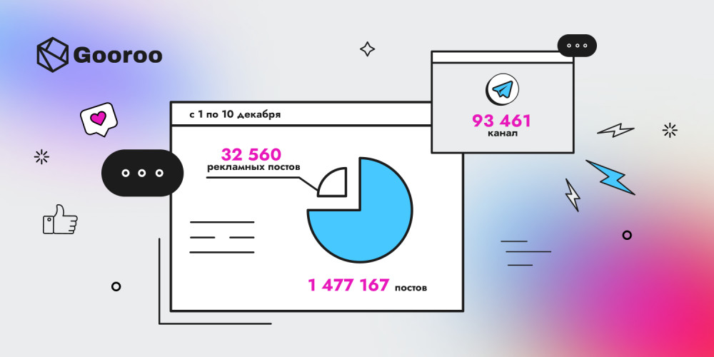 Исследование охватило 93 461 Telegram канала на территории России. Из анализа были исключены каналы, посвященные тематикам 18+ и политике, для обеспечения соответствия нормам рекламы и этическим стандартам. В каждом из отобранных каналов проводился ежедневный мониторинг новых сообщений в период с 1 по 10 декабря. Всего было проанализировано 1 477 167 постов. Из общего числа сообщений были выделены те, которые содержали рекламную информацию. Общее количество таких постов составило 32 560. Каждое рекламное объявление было также классифицировано по тематической категории. Это позволило провести анализ распределения рекламных бюджетов по различным сегментам.