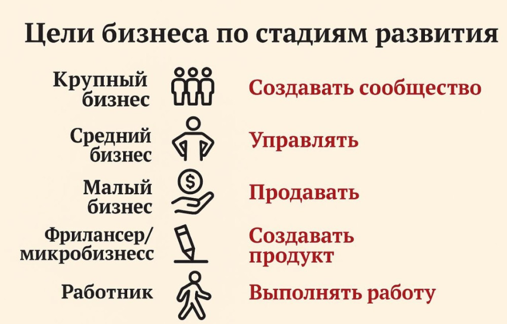Главная цель бизнеса на каждой стадии: от фрилансера до компании с сообществом