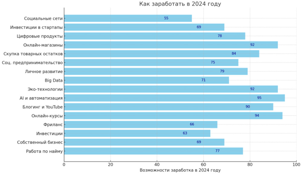 Развитие технологий искусственного интеллекта и автоматизации открывает новые возможности для заработка. В 2024 году специалисты в области AI могут разрабатывать и продавать решения для различных отраслей — от производства до маркетинга. Важно постоянно обучаться и следить за последними тенденциями в этой сфере.