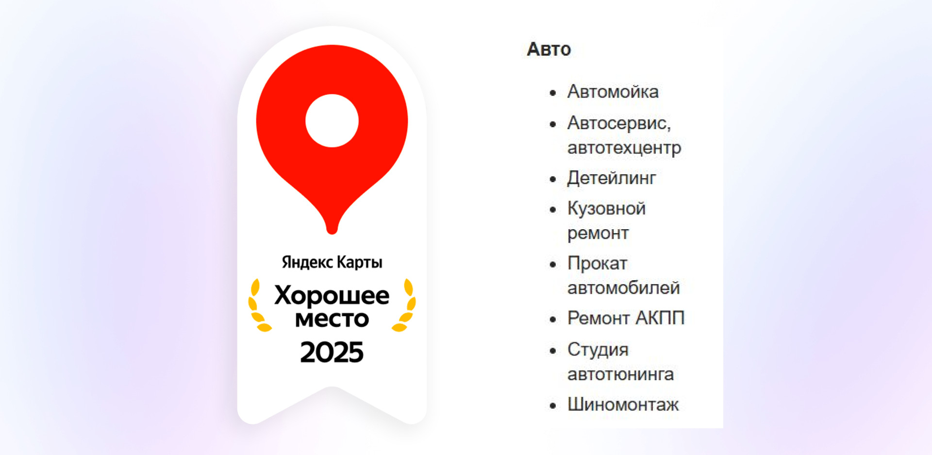 Наверняка вы видели на витринах и карточках компаний яркую наклейку «Хорошее место». Это не просто декор — это знак доверия от Яндекса. В тематике авто эту награду могут получить практически все: автосервисы, шиномонтажи, студии автотюнинга и другие. Каждый год Яндекс.Карты награждают организации с высоким рейтингом и лучшими отзывами. Чтобы получить отметку, у компании должен быть: Зачем это нужно? Давайте честно: когда вы сами говорите «мы лучшие» — это просто слова. А когда это подтверждают десятки реальных клиентов в отзывах, и Яндекс отмечает вас наградой, доверие к вашему сервису вырастает в разы. Но самое важное, если зайти в «Яндекс.Карты», то одна из первых подборок, которую вы увидите в выдаче, — это «Хорошие места». В ней собраны компании с высоким рейтингом и подтвержденной репутацией. Самое важное, что при поиске по вашей тематике, например «автосервис в Москве», Яндекс покажет в этом разделе только те сервисы, которые получили отметку «Хорошее место». То есть, попав туда, вы автоматически оказываетесь в числе лучших — и это дает мощный поток клиентов.