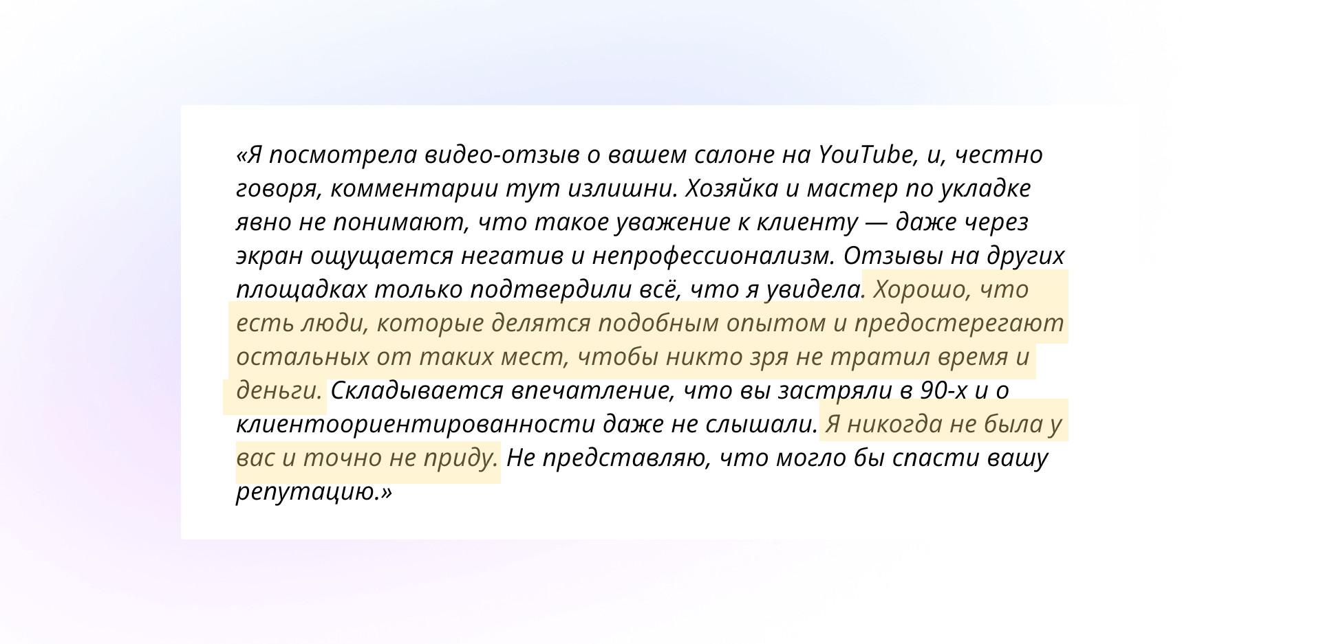 Если инфлюенсер рассказывает, что его «обманули» или «разочаровали», его слова мгновенно запускают цепную реакцию. Подписчики начинают делиться историей, писать гневные комментарии, ставить низкие оценки на картах и в поисковиках — даже не имея личного опыта взаимодействия с брендом.