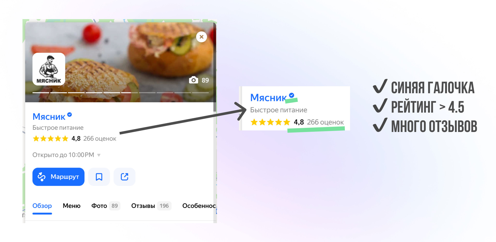 Ведь Яндекс изначально ограничивает список категорий, и туда попадают далеко не все. А если конкретнее, то только те бизнесы, где выбор клиента напрямую зависит от качества сервиса.