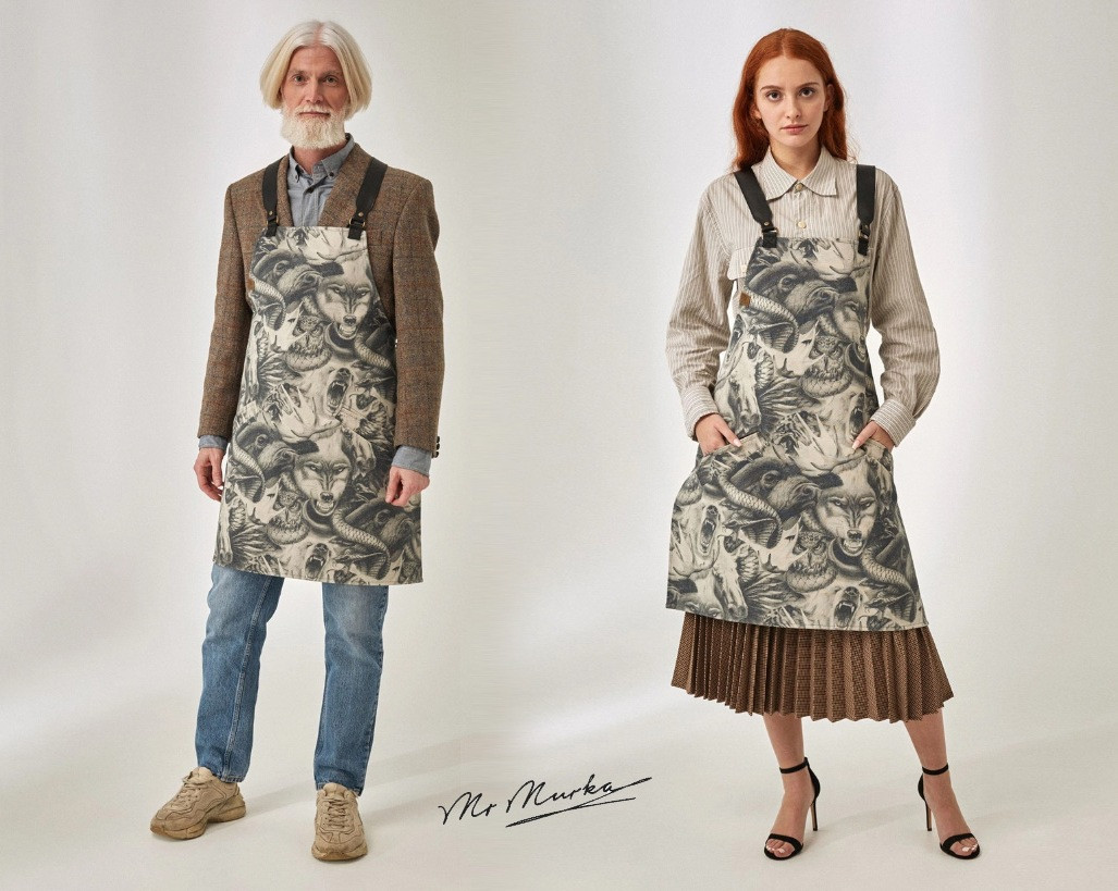 · Детали: Минималистичные, но продуманные элементы, такие как контрастные строчки, металлические застёжки или кожаные вставки, добавляют фартуку индивидуальности.