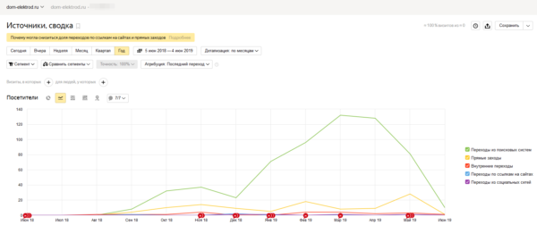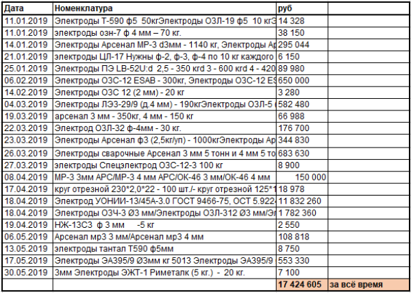 Следующим шагом, самым время затратным, была подготовка файла под импорт. Для этого получил прайс-листы производителей электродов, всего порядка десяти. На самом деле тут ещё есть куда пахать и это далеко не все из заводов, но я остановился на семи, решив, что для теста хватит. И последовала монотонная ручная работа. Из-за корявого плагина импорта в WordPress, воспринимающего только один вид кодировки текста, пришлось использовать Excel файл в совокупности с блокнотом. В Excel я формировал строки, копировал их в блокнот и далее импортировал с файла .txt. Получилось довольно быстро, всю работу я проделал за два выходных, но было довольно муторно. Также пришлось самостоятельно писать шаблоны текстов. В итоге я получил онлайн-каталог с 584 товарами и возможностью оформить заказ. Докрутить онлайн кассу и возможность оплаты, получился бы полноценный интернет-магазин, за исключением автоматического обновления цен и остатков. При наличии YML каталога было бы намного проще. А дальше, я просто забил на этот сайт. Забил, пока не пошли первые заявки. С ростом их числа пришло понимание, что выполнить их наша компания попросту не сможет (помимо прочего, я ещё отвечаю и за продажи), во-первых, из-за специфики продукта, а во-вторых из-за внутренних нюансов. Оставалось наблюдать, как их число растёт. Были попытки сделать какие-то отгрузки из наличия, но таковых почти не имелось. Спустя десять месяцев я решил подбить результаты, на их основе и получилась статья. Сайт проработал около 10 месяцев. Посетителей за это время было и не так много, всего 688 посетителей. Стоит отметить, что это полностью органический трафик. Жалею, что не прикрутил в начале цели, картинка стала бы интереснее. Но тем не менее, на почту пришло 22 заявки (на самом деле их больше, кто-то звонил, кто-то слал запросы на смежную продукцию). Не хитрыми расчётами мы получили конверсию в заявки, равную 22/688=3% При этом ROI от заявок вообще заоблачный. Конечно его считают от прибыли, но всё же. Но самое интересное, это сумма заявок, которую я уже писал. Ещё раз привожу скрин на конец мая 2019 года. Ну а тут спустя время подбил результаты на конец 2019 года. Получилось 30 922 334 рубля за 2019 год → это 2 576 000 руб в месяц Спустя несколько лет я решил подбить результаты и проверил каждый заказ упавший за это время. С 2019 по июнь 07.06.2022 года получилось заказов на 53 952 740 ₽. На мой взгляд, гипотеза более, чем удалась. В дальнейшем я планирую повторить гипотезу на другой продукции, которую проще продавать и легче достать.