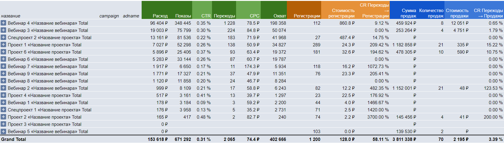 Формируем сквозной отчёт по таргетированной рекламе