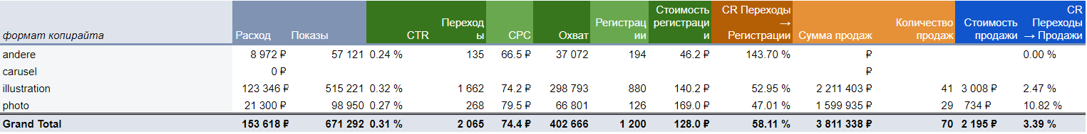 - Какой формат визуала в объявлениях приносит больше продаж?