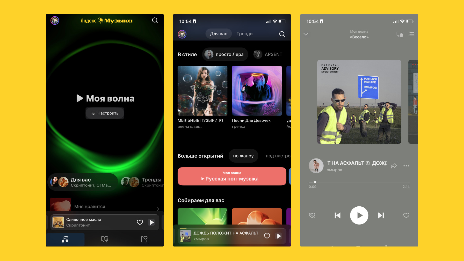 Также порадовало, что раздел с чартом, подборками и плейлистами редакции вынесли в отдельную вкладку и назвали ее «Тренды». Теперь не нужно искать по главной странице чарты, чтобы узнать, что там нынче слушают зумеры. Закрыли еще одну мою боль. Мое мнение — новая айдентика — кайф. Выглядит достаточно свежо. Скорее всего, основная задумка — добавить в дизайн эмоциональной составляющей (хотя, может, просто показалось из-за отсутствия ноты в лого). Подборок стало больше, что позволяет быстрее искать новую музыку под настроение, но к новым кнопкам стоит немного привыкнуть. Пишите в комментах, как вам новая айдентика «Яндекс Музыки»?
