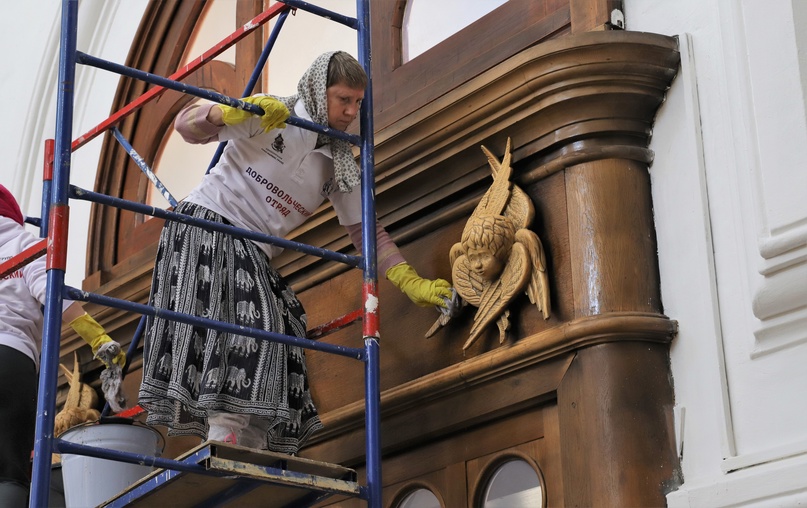 За несколько часов они смогли привести в порядок после зимы прихрамовую территорию, а также убрались внутри храма: провели влажную уборку — помыли хоры, иконостас, очистили от копоти деревянные резные украшения, церковную утварь, почистили полы, покрыли лаком киоты. Вместе с волонтёрами в храме трудились и прихожане, которые нескончаемым потоком шли помочь собору в подготовке к светлому празднику.