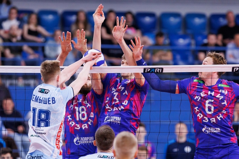 По регламенту соревнований первые два матча проходили в столице Татарстана. В первый день, 24 апреля, обе команды долгое время не могли получить серьёзного преимущества в счёте. И «Зенит», и «Динамо» эффективно действовали на блоке и в защите, что позволяло раз за разом реализовывать доигровочные мячи. Партии выделялись длительными розыгрышами, яркими спасениями и красивыми выигранными мячами. Команды всё время шли вровень, однако в концовке каждой партии «Зенит-Казань» оказывался сильнее. Как итог — 3:0 в концовке первой игры в пользу хозяев площадки.