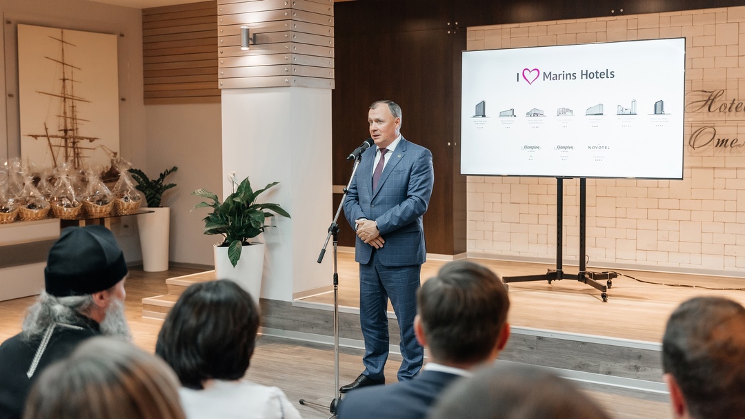 Встреча началась с выступления ансамбля солистов екатеринбургского камерного оркестра «B-A-C-H», который исполнил увертюру из кинофильма «Дети капитана Гранта» и сюиту «Время, вперед!» Георгия Свиридова. Небольшой видеофильм напомнил гостям об истории «Маринс Парк Отель Екатеринбург». С приветственным словом выступил Глава Екатеринбурга Алексей Валерьевич Орлов: — За нашим городом был закреплён статус центра международных коммуникаций. Множество мероприятий давно стало визитной карточкой Екатеринбурга. За прошлый год средняя загрузка отелей составила более 70%. Это показатель, при котором можно думать о дальнейшем развитии. Мы уверены, что строительство нового корпуса «Маринс Парк Отель Екатеринбург» станет значительным вкладом в развитие города и гостиничной инфраструктуры. Митрополит Екатеринбургский и Верхотурский Евгений подчеркнул духовное значение и важность проекта: — Профессия отельера нашла своё отражение даже в Священном писании. В нём рассказывается о человеке, который, заботясь о страннике, разместил его в гостинице. Это символ заботы, который мы обязательно увидим и в новом корпусе. Я хочу пожелать, чтобы здание было построено надёжно, красиво и современно, с духом гостеприимства и любви к человеку. — Екатеринбург — это мощный центр общественно-политической, деловой, культурной и спортивной жизни России, — подчеркнул заместитель Председателя Совета директоров Управляющей компании «Союз Маринс Групп» Андрей Андреевич Юдинцев. — Строительство отеля станет значимым вкладом в укрепление позиций города как ключевого экономического и логистического узла страны. Новый проект предусматривает использование современных инженерных и дизайнерских решений, что позволит значительно повысить уровень предоставляемых услуг. Директор по архитектуре, дизайну и эстетике «Союза Маринс Групп» Андрей Сергеевич Константинов представил собравшимся дизайн-проект строящегося здания. — Новый корпус станет воплощением современных стандартов в гостиничном бизнесе, — прокомментировал он. — Мы внедрим обновлённый фирменный стиль и улучшенные планировочные решения, создавая комфортные и стильные номера. Каждый элемент дизайна продуман с учётом потребностей любого путешественника. Мы работаем над созданием многофункционального комплекса, который будет вдохновлять и радовать наших гостей. — Мы плавно начнём внедрять обновлённый дизайн интерьеров и номеров в Екатеринбурге, а также постараемся распространить его и на другие отели сети Marins Hotels, — дополнил выступление А. С. Константинова заместитель Председателя Совета директоров Управляющей компании «Союз Маринс Групп» Дмитрий Николаевич Рогачёв. — Уверен, что с нашей командой проект будет успешным. План работ включает в себя возведение нового жилого корпуса с более чем 160 комфортными номерами бизнес-класса. Проектом предусмотрено строительство большого инфраструктурного комплекса с современным многофункциональным конференц-залом почти на 400 мест, спа- и фитнес-зонами с бассейном, подземной парковкой, а также отдельным офисным пространством для администрации отеля. В ныне существующем корпусе отеля будет произведён капитальный ремонт с увеличением номерного фонда на 60 номеров, реновацией центрального холла, ресторанов и зоны ресепшен. После завершени