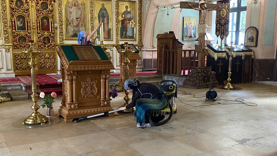 В этот раз работы предстояло немало. Необходимо было помыть все окна, очистить пол и подсвечники от воска, забраться в самые труднодоступные места, чтобы убрать паутину, навести порядок в алтаре.