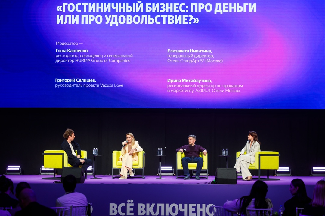 Деловая часть «Всё включено» состояла из трёх тематических блоков: «Цифры», «Идеи» и «Люди». Они раскрывали разные аспекты гостиничного бизнеса — от клиентского сервиса, revenue-менеджмента и маркетинга до эффективного управления командой.
