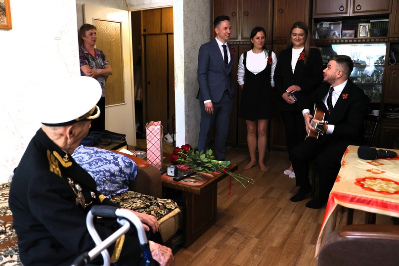 В преддверии 9 Мая традиционно самые тёплые слова благодарности адресованы ветеранам и труженикам тыла ‒ людям, кто с честью и доблестью отстаивали независимость Родины на поле боя и на трудовом фронте. Каждый год сотрудники и руководители предприятий компании приезжают к ветеранам, чтобы лично поздравить со священным праздником. От коллектива «Союза Маринс Групп» 5 мая поздравления принимал Павел Алексеевич Яичницын — почётный ветеран Нижнего Новгорода, капитан 1-го ранга в отставке, добрый друг компании «Металлоптторг» и «Союза Маринс Групп». Для героя войны силами сотрудников был подготовлен небольшой адресный концерт, где гости под звуки гитары исполнили песни военных лет, а Павел Алексеевич охотно подпевал.