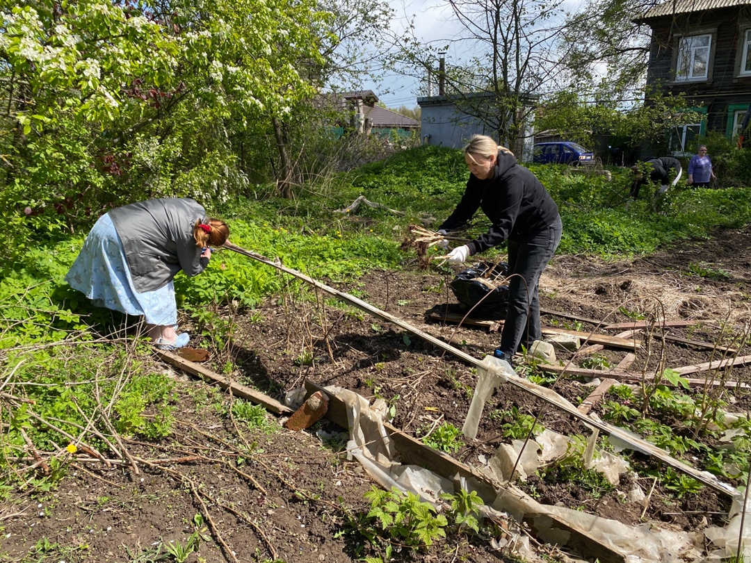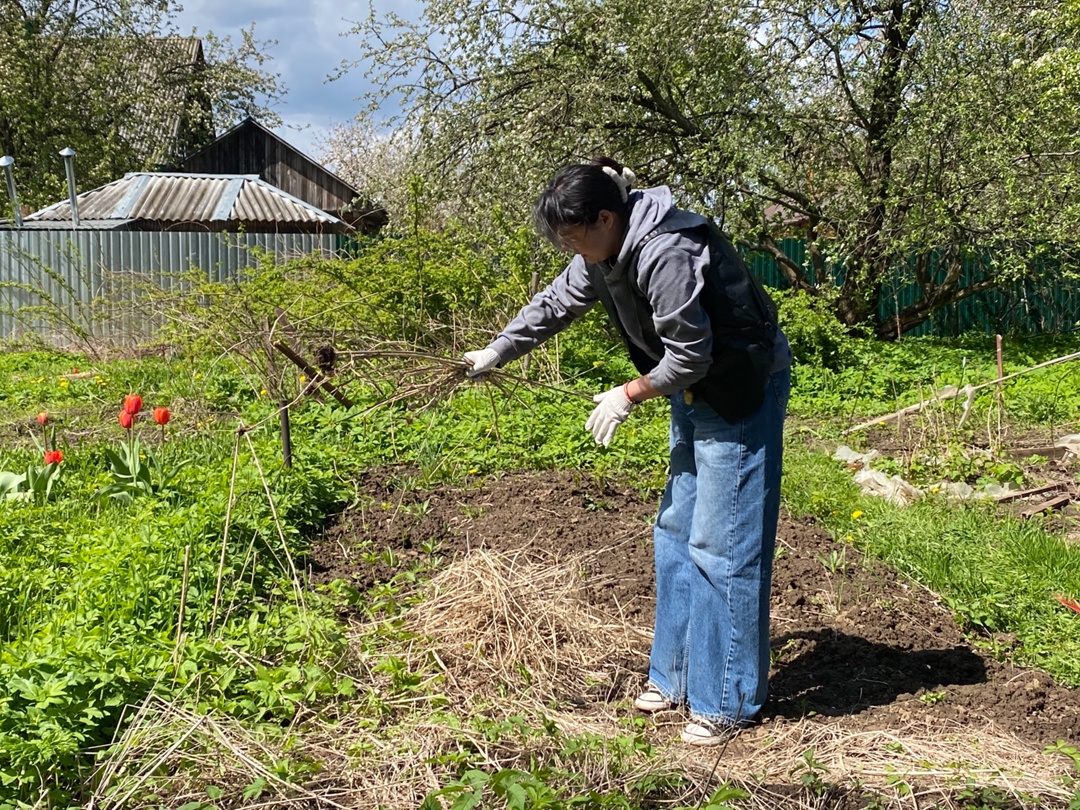 Вооружившись граблями и лопатами, за несколько часов волонтёры убрали бытовой мусор, сухие ветки и выкопали цветы для дальнейшей пересадки, — словом расчистили участок.