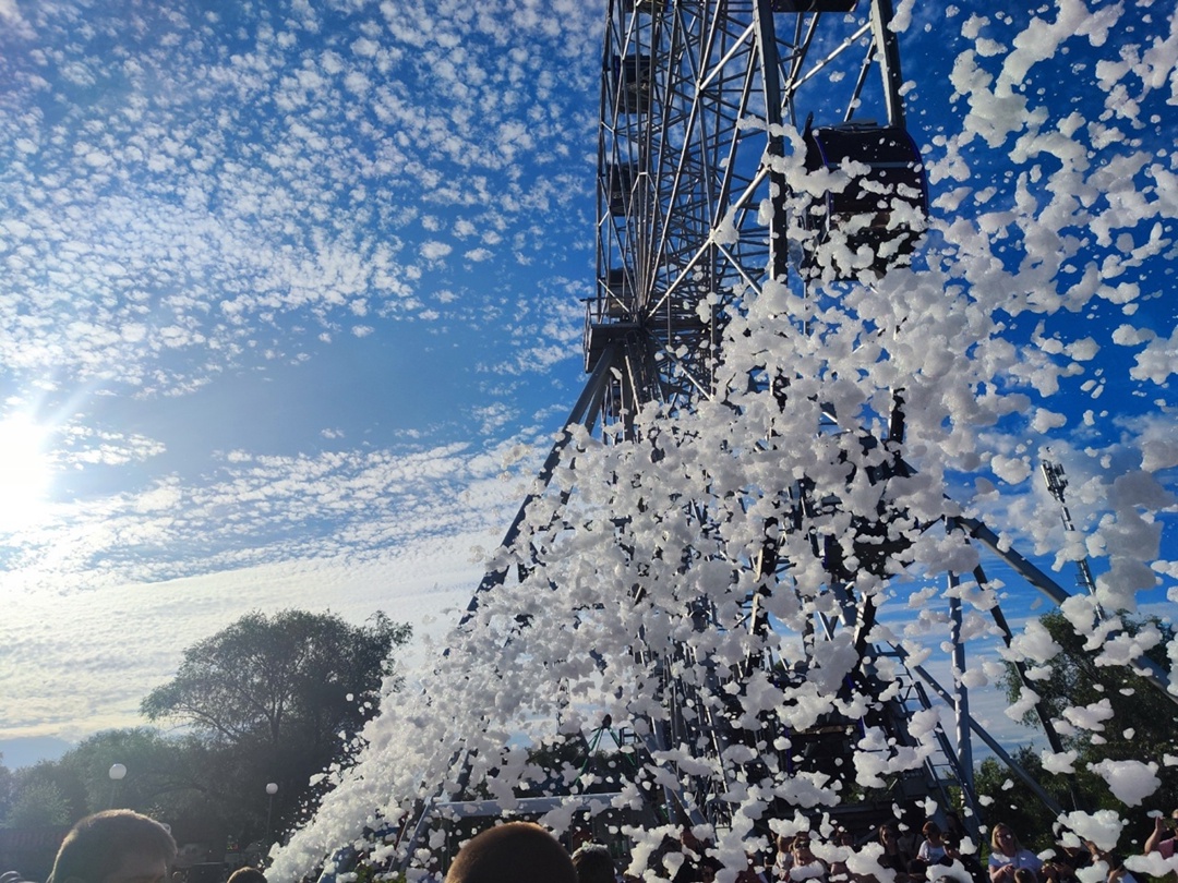 Настоящий фурор вызвали пенная дискотека и химическое шоу — они впечатлили и детей, и взрослых. А под живые барабанные ритмы невозможно было устоять на месте — танцевали все. Финалом вечера стали розыгрыш подарков и огненное шоу ‒ яркое завершение большого праздника.