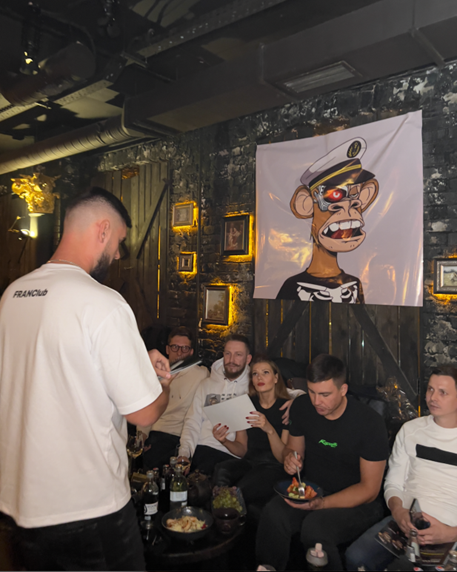 В отличие от них, FRANClub не требует оплаты подписок, также взносов за вступление в клуб, вы инвестируете незначительную сумму в NFT-активы клуба и получаете прибыль с инвестиций сообщества. Также члены клуба FRANC получают доступ в закрытое бизнес- комьюнити с чатом инвесторов клуба, куда уже входят предприниматели, блогеры и эксперты в разных нишах. Клуб организовывает регулярные мероприятия и встречи. Более того, все участники имеют привилегии приобретенных NFT- коллекций — как пример, совсем недавно прошла закрытая встреча владельцев BAYC в Майами, на которую нам предоставили 2 билета. Но самое главное, все участники FRANClub получают возможность стать инвесторами и акционерами различных проектов, например, ресторана в Дубае, пропорционально своей доли в клубе. Расскажем об этом далее.
