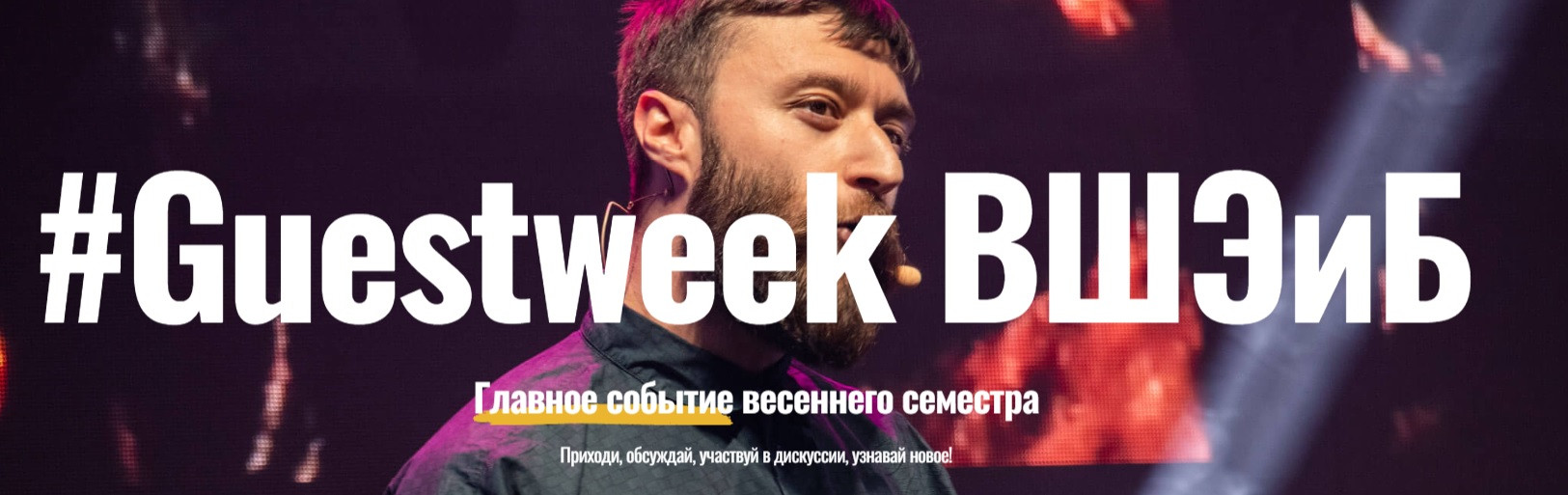 Гостевая неделя ВШЭиБ — это оригинальный проект, дающий возможность студентам послушать ведущих бизнес-практиков по маркетингу, логистике, цифровым технологиям, торговому делу, бизнесу, рекламе, управлению персоналом и другим наиболее важным направлениям.