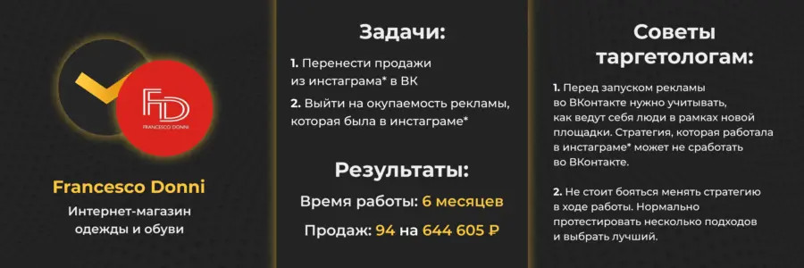 Сеть магазинов женской одежды Франческо Донни: Перешли из нельзяграма во ВКонтакте и сохранили продажи на прежнем уровне