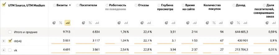 Следующим нашим решением было протестировать рекламу, которая предлагала перейти в сообщество и там оформить заказ. Результат. Люди на 27% чаще стали переходить в сообщество и на сайт, но ничего не покупали. Вывод. Реклама привлекала людей в сообщество, но они не покупали одежду через магазин во ВКонтакте. Людям привычнее делать это на сайте интернет-магазина. Поэтому мы решили вести людей из ВКонтакте на сайт по стратегии в несколько касаний. Подготовка. По итогам предыдущей работы поняли, что людям требуется время на принятие решения о покупке одежды. Поэтому решили запустить рекламу в два касания. Utm-метки. Чтобы отслеживать работу рекламы мы разметили в сообществе все ссылки на сайт utm-метками ВКонтакте. Благодаря меткам мы видели, когда клиент перешел с ВКонтакте на сайт и понимали, что рекламу для второго касания нужно разместить именно во ВКонтакте. Первое касание. На первое касание мы выделили 40% бюджета на рекламу. Перед нами стояла задача перевести людей из холодной аудитории в теплую по минимальной цене. Поэтому решили делать не обычные посты, а создали рекламные объявления с сезонными подборками товаров. Для подборки выбрали товары, которые пользуются популярностью в этом сезоне. Нам помог Яндекс. Вордстат. Мы посмотрели, что люди ищут в поисковиках за последние 7 дней и предложили купить им эти вещи в нашем интернет-магазине. Чтобы сократить бюджет на рекламу, следили за стоимостью клика. Если цена за клик на одну из подборок росла, то мы ее сразу отключали. Рекламный бюджет перенаправляли в пользу подборки, которая давала дешевые переходы на сайт или в сообщество. Это помогало получать клиента в базу теплой аудитории по минимальной цене. Второе касание. Первым инструментом для второго касания с аудиторией выбрали динамический ретаргетинг. Он позволяет показывать в рекламе потенциальным клиентам те товары, которые они просматривали. Если пользователь искал куртку, то реклама ему показывала куртку, которую он смотрел или похожую. Результат динамического ретаргетинга: Покупок совершенно: 67 Сумма покупок: 430 901 ₽ Вторым инструментом для касания с теплой аудиторией стала реклама классических постов. Подписчики сообщества не всегда видят посты, которые в нем выходят. Поэтому мы решили часть постов из группы запустить в рекламу. Результат рекламы постов: Покупок совершено: 19 Сумма покупок: 169 380 ₽ Результат. Стратегия в два касания себя оправдала. Мы получили 94 продажи на сумму 644 605 ₽ за 6 месяцев работы. Результаты работы по стратегии в два касания: Реклама на холодную аудиторию: 8 покупок на 44 342 ₽ Динамический ретаргетинг: 67 покупок на 430 901 ₽ Реклама классических постов: 19 покупок на 169 380 ₽ 1. Протестировать инструмент автопродвижение товаров во ВКонтакте. Автопродвижение работает также как динамический ретаргетинг, только с товарами, которые размещены в сообществе во ВКонтакте. 2. Проанализировать интересы подписчиков сообщества магазина одежды. Посмотреть в каких сообществах состоят подписчики и настроить рекламу на схожие тематики. Например, мы заметили, что значимая часть наших подписчиков подписана на группы о материнстве. Теперь хотим в них разместить рекламу товаров, которые продаются лучше всего. 1. Перед запуском рекламы во ВКонтакте нужно учитывать, как ведут себя люди в рамках новой площадки. Стратегия, к
